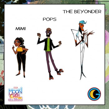 The social campaign for Disney Channel just dropped a set of new animation designs for the upcoming Moon Girl and Devil Dinosaur animated series. The designs depict the title characters, along with a detail design on Lunella, and ancillary designs for the rest of the cast of characters, which includes The Beyonder, Casey, James Jr., Adria, Mimi and Pops. Diamond White is providing the voice of Lunella and Fred Tatasciore plays Devil. Series producer Laurence Fishburne voices The Beyonder. Sadly missing from the post is a premiere date for the show, which is due out sometime this summer.