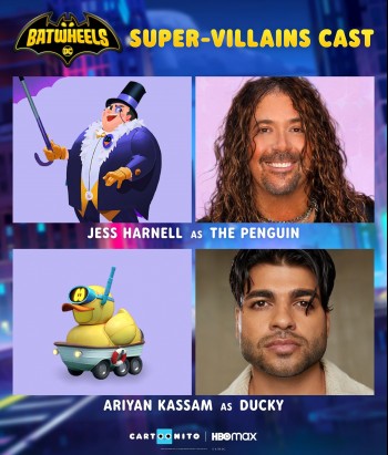 The social campaign for the upcoming kids series Batwheels has dropped a slew of images featuring "The Legion of Zoom." That is to say, it's a series of images of the animated Bat-villains, their anthropomorphic vehicles, and the actors who are voicing them. Shown are Chandni Parekh as Harley Quinn, Alexandra Novelle as Harley's ride Jestah, Sungwon Cho as Riddler, Josey Montana McCoy as Riddler's helicopter Quizz, Mick Wingert as Joke, Griffin Burns as Joker's van Prank, Tom Kenny as Crash, Gina Rodriguez as Catwoman, Regi Davis as Mr. Freeze, Xolo Maridueña as Freeze's ice cream truck Snowy, Jess Harnell as The Penguin and Ariyan Kassam as Penguin's amphibious vehicle Ducky.