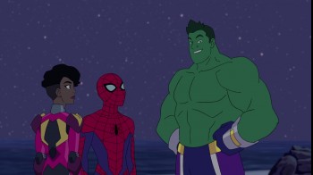 Images from this week's episode of Marvel's Spider-Man reveals an Avengers team-up of, well, secondary proportions. Spidey rounds up a legion of substitute heroes which include baby Groot, Ironheart, Hulk (the Amadeus Cho one), Kid Arachnid (aka Miles Morales) and Doctor Strange (the real one). Watch "Amazing Friends," (which is the third episode of season 3 to air, but the press materials indicate it is the 14th) on May 17 on Disney XD.