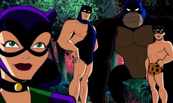 In a jungle battle with Catwoman, Jungle Batman and Jungle Robin are assisted by Bat-Ape in this clip from the season three episode of Batman: The Brave and The Bold, "Shadow of the Bat."