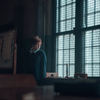 Next are photos of Maisie Williams (Game of Thrones) as Rahne Sinclair, aka Wolfsbane. She's a Scottish character who can transform into a wolf or a wolf-human hybrid. She has a troubled past with religion, as suggested by one of the photos being a crucifix in her hands.